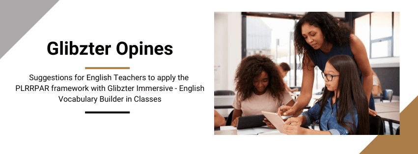 This microblog focuses on the facilitative role of English Language Teachers in implementing the PLRRPAR framework in their classes, along with suggestive usage of Glibzter Immersive - English Vocabulary Builder across all the seven phases of the framework